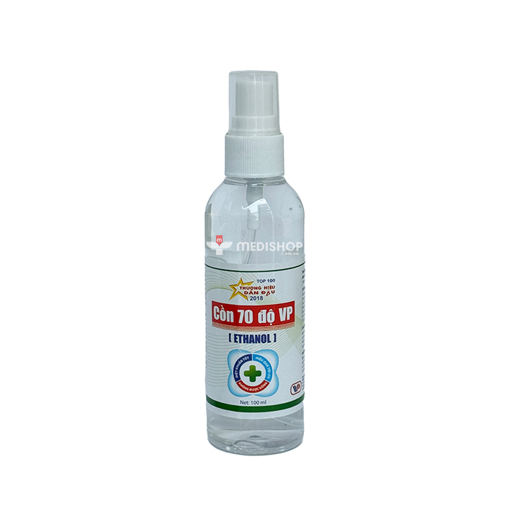 Dung Dịch Cồn Y Tế 70 Độ 100ml (Xịt) dùng để sát trùng trong các thủ thuật tiêm thuốc, truyền dịch hoặc sát trùng dụng cụ, được sử dụng trong các phòng khám, bệnh viện và là sản phẩm cần thiết trong tủ thuốc mọi gia đình.