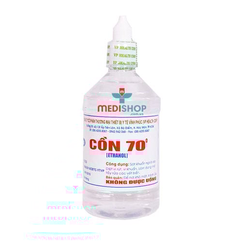 Dung Dịch Cồn Y Tế 70 Độ 500ml dùng để sát trùng trong các thủ thuật tiêm thuốc, truyền dịch hoặc sát trùng dụng cụ, được sử dụng trong các phòng khám, bệnh viện và là sản phẩm cần thiết trong tủ thuốc mọi gia đình.